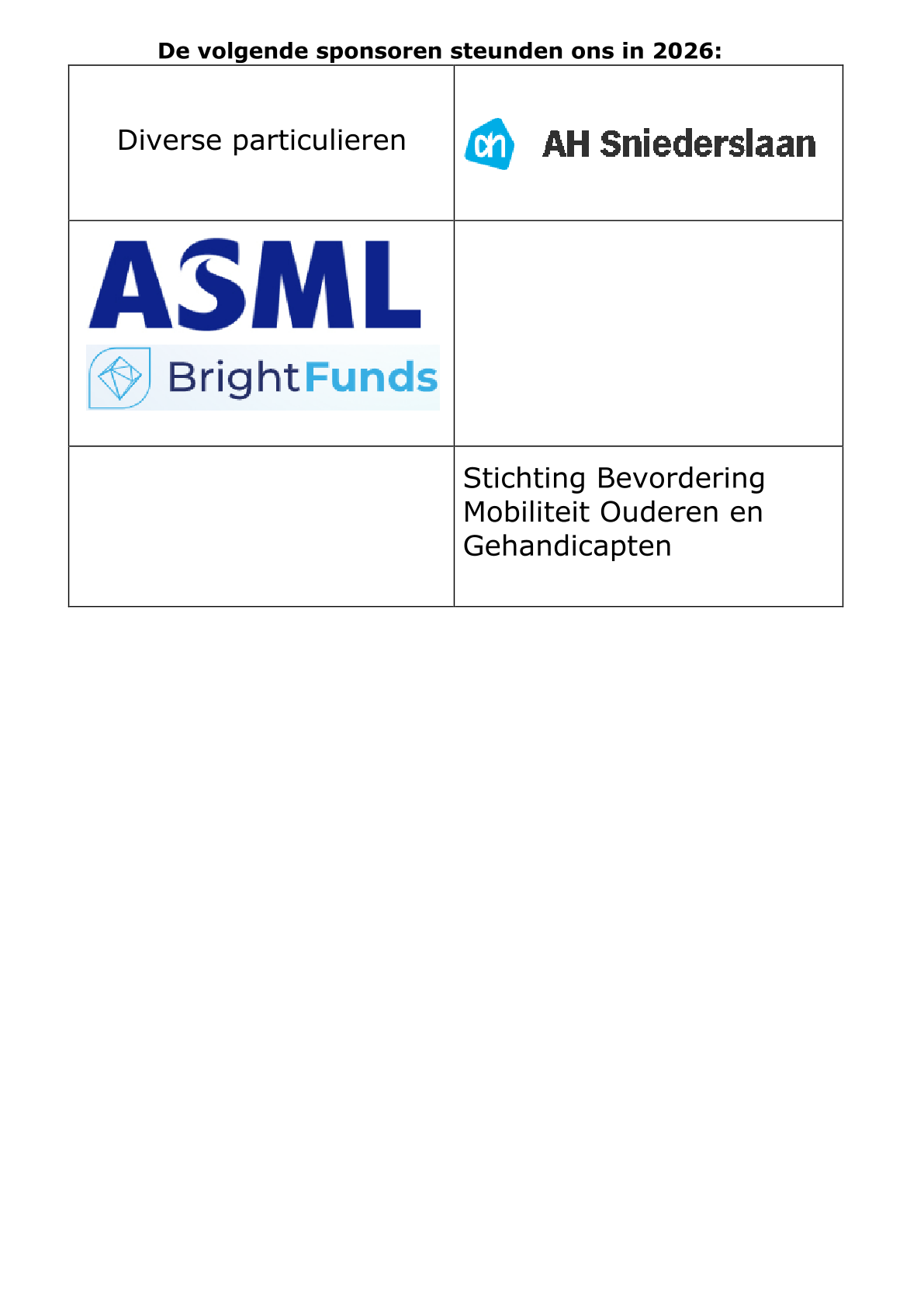 Zonder de bijdragen van diverse fondsen, de gemeente, bedrijven en particulieren lukt het ons niet om onze gasten een gezellige middag te bieden.